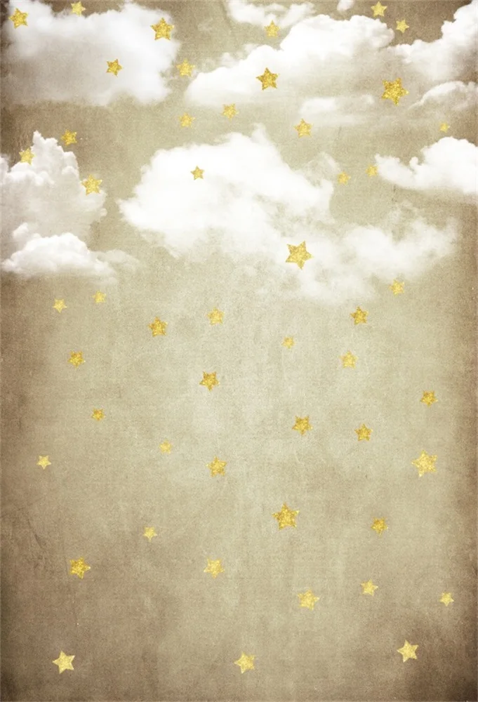 Laeacco Gold Star Cloud Baby Shower Newborn Wallpaper Portrait