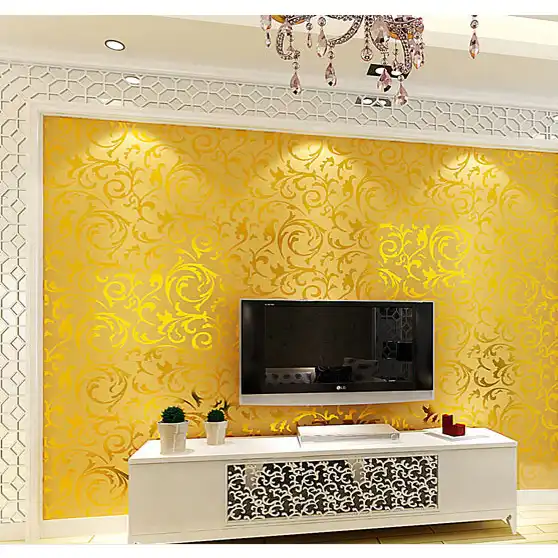 76063 Gold White Damask Textured Wallpaper 3d Traditional Wallpaper By Wallcoverings Mart