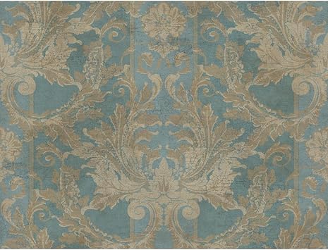 Norwall Wallcoverings Floral Damask Blue Beige And Metallic Gold Wallpaper Cs35621 Bellacor