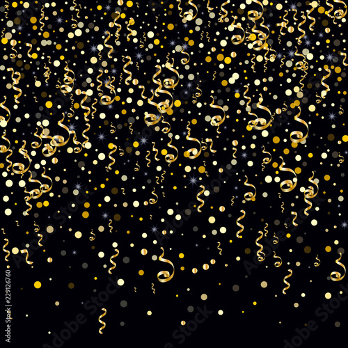 Golden Rain Isolated On Black Background Vector Gold Grain