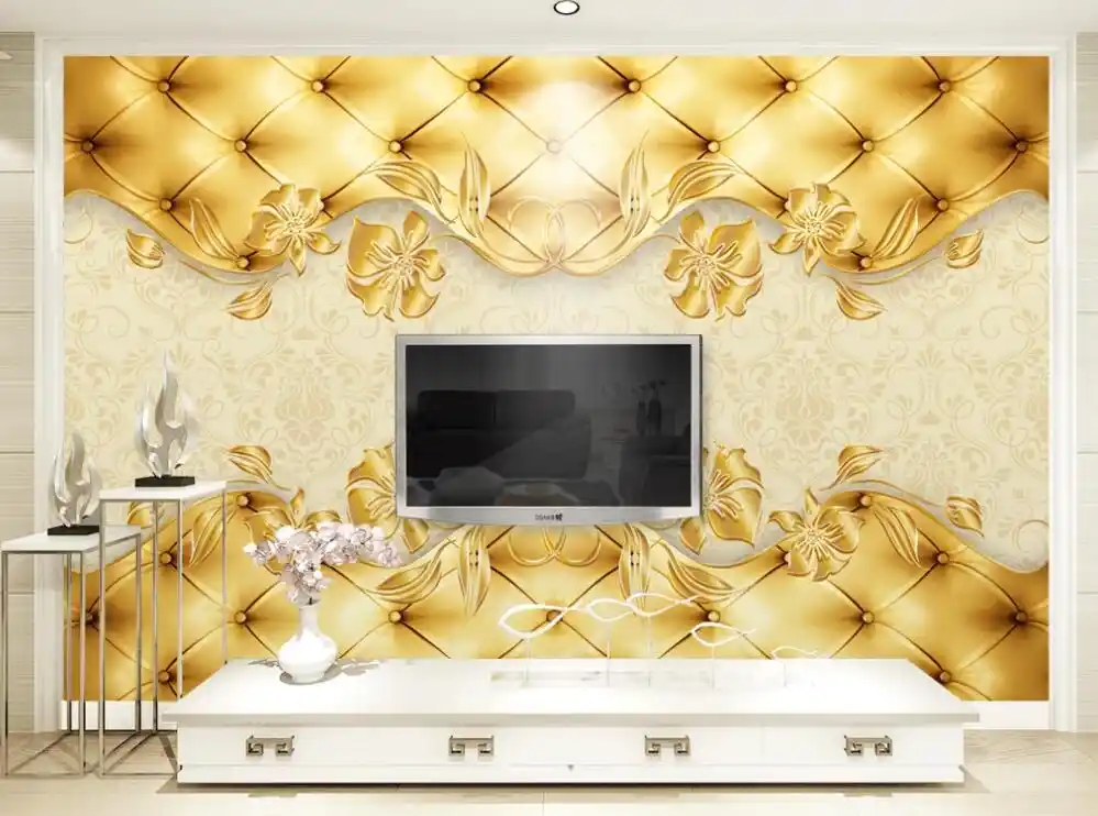 Interior Wall Decorative Golden 3d Wallpaper For Living Room