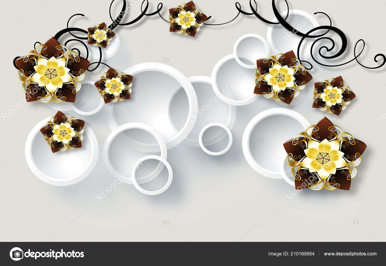 Photo Wallpaper 3d Effect Golden Flowers 3 Fototapet Art