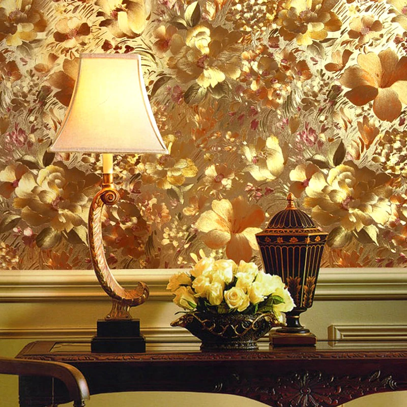 3d Deep Embossed Gold Foil Golden Yellow Wallpaper Roll Home Decor
