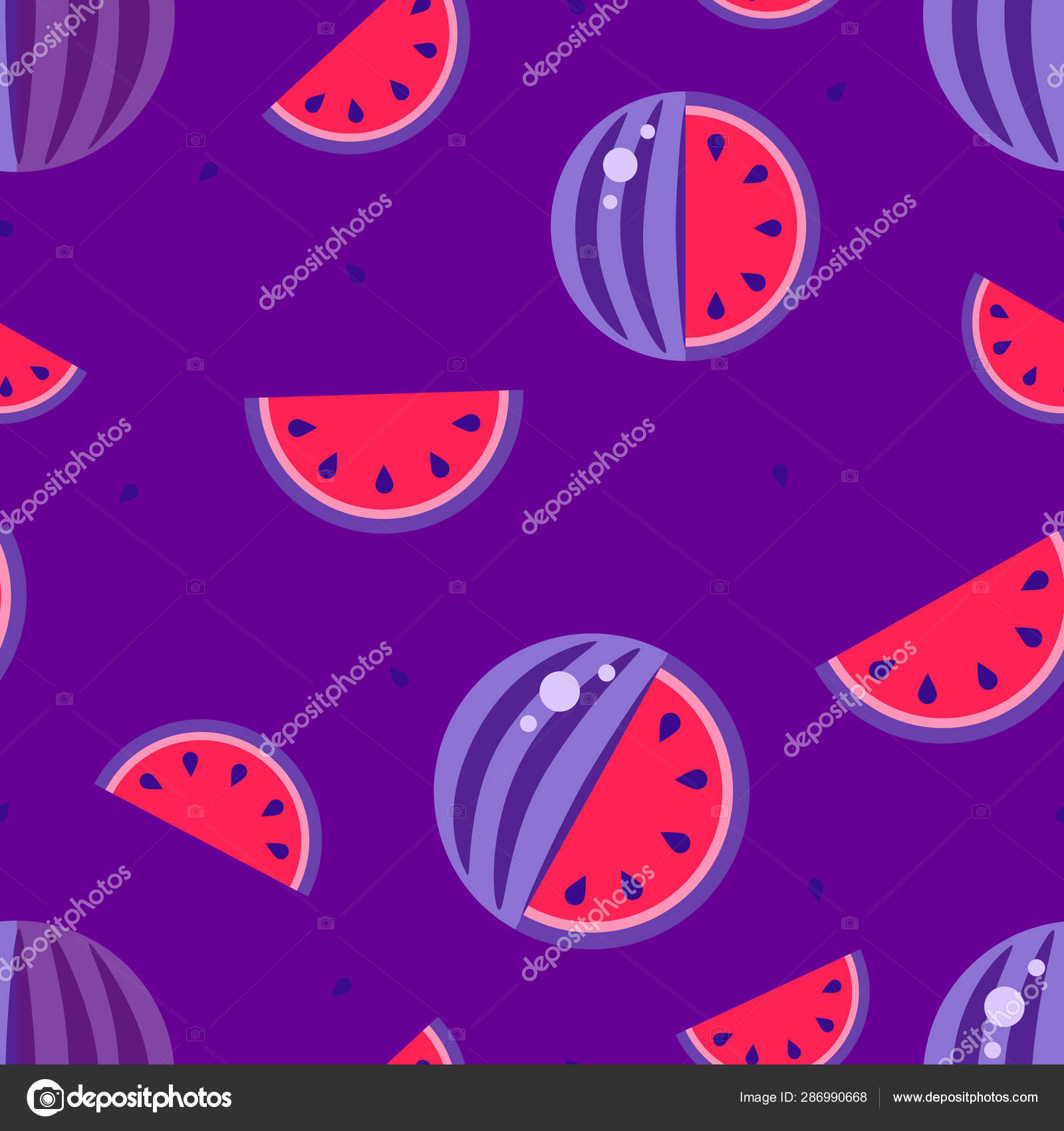 Violet Red Fresh Watermelon Background Seamless Pattern Melons