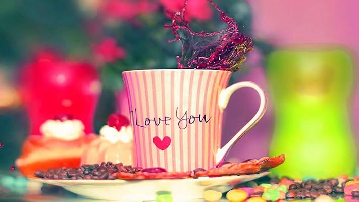 Love Red Heart Shape Coffee Cup Good Morning Wallpaper