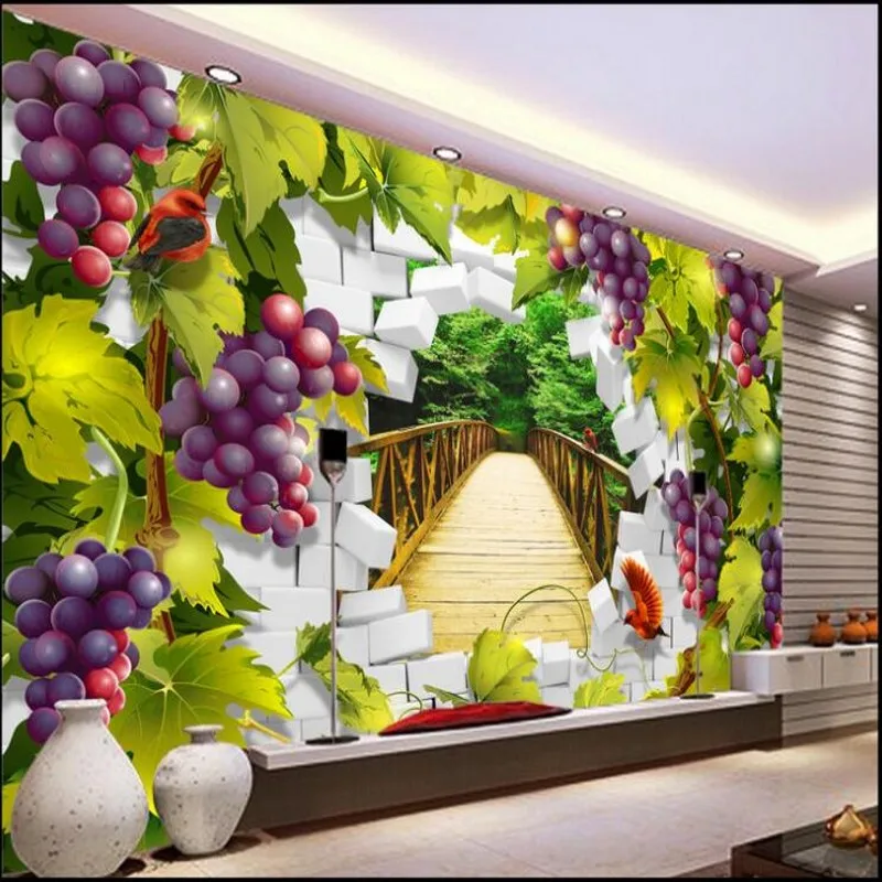 Beibehang Large Custom Wallpaper Green Grape Virtual 3d Landscape