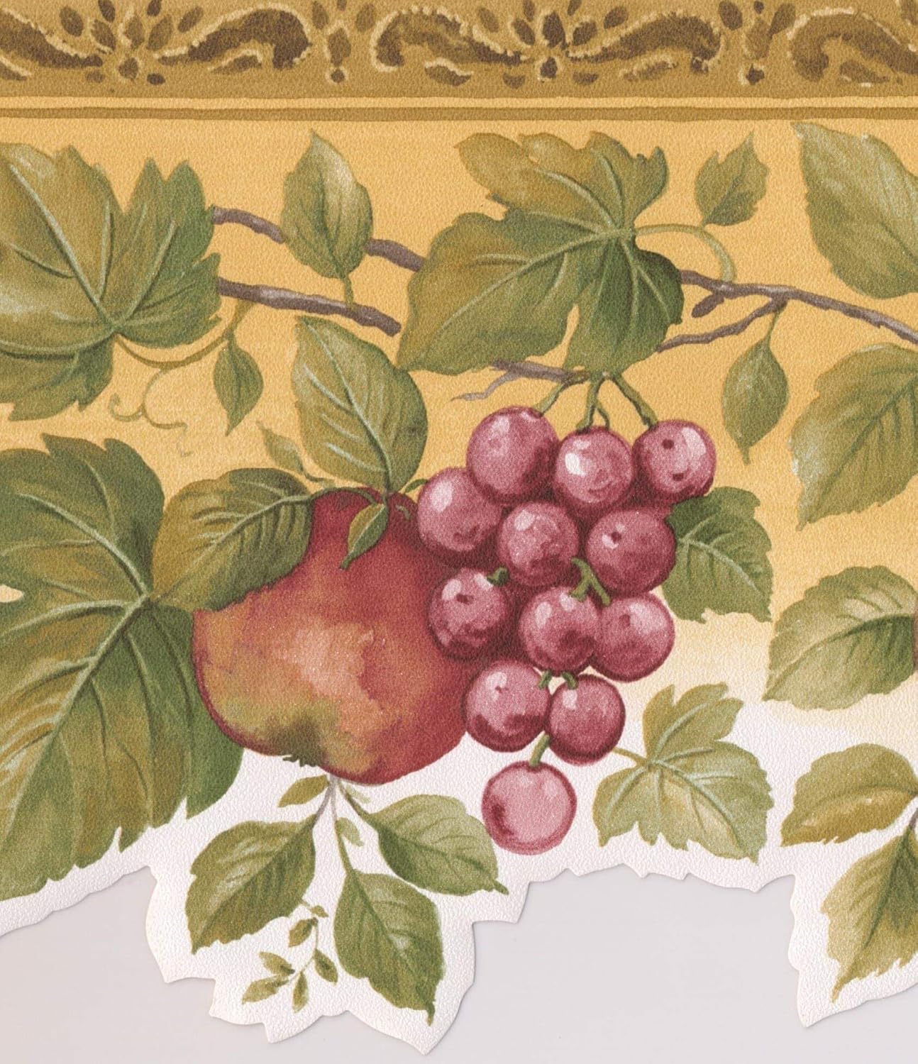 Red Apple Rouge Grapes Berries On Vine Yellow Wallpaper Border