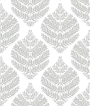 Amazon Com Roommates Hygge Fern Damask Gray Peel And Stick
