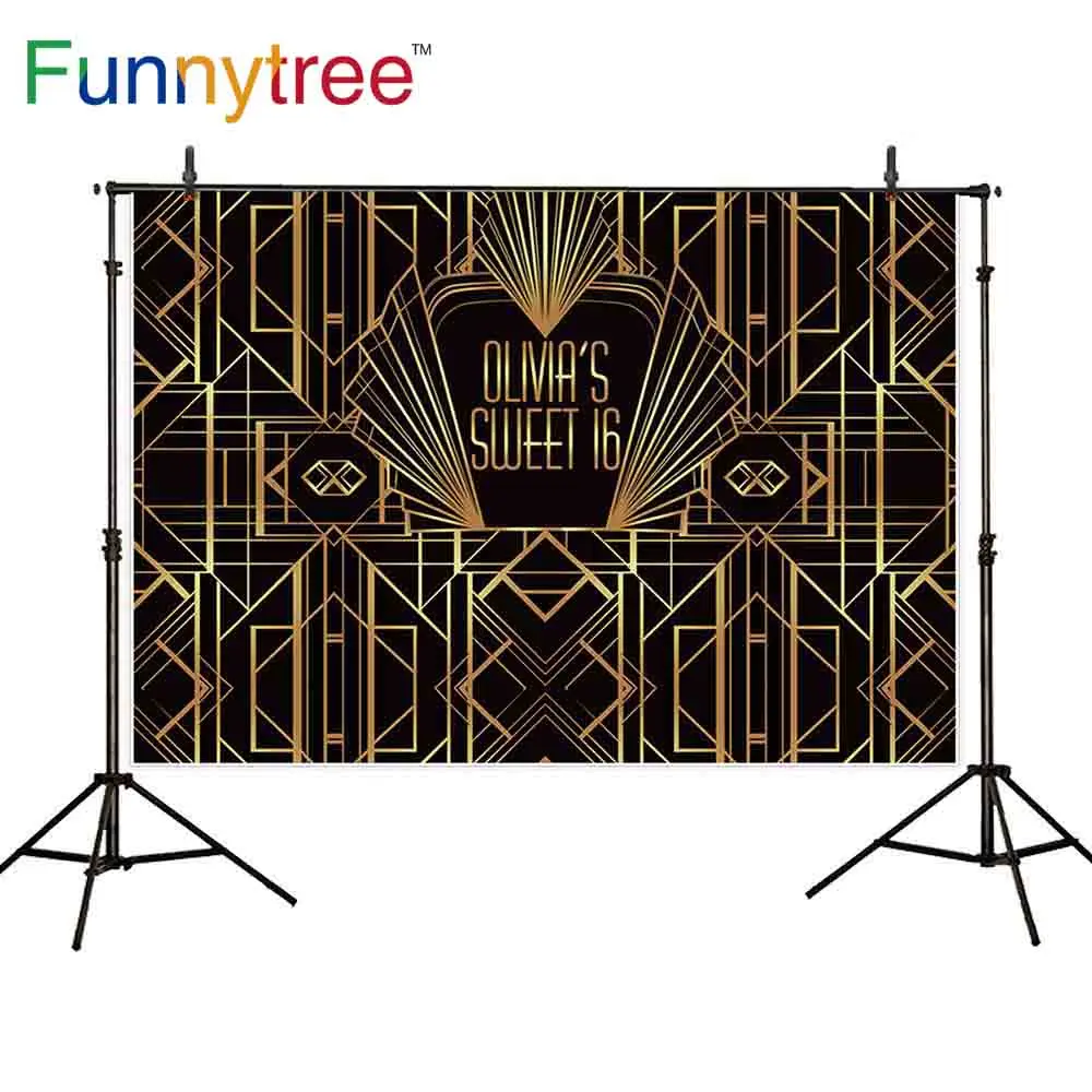 Funnytree Backdrop Golden Great Gatsby Sweet 16 Customize