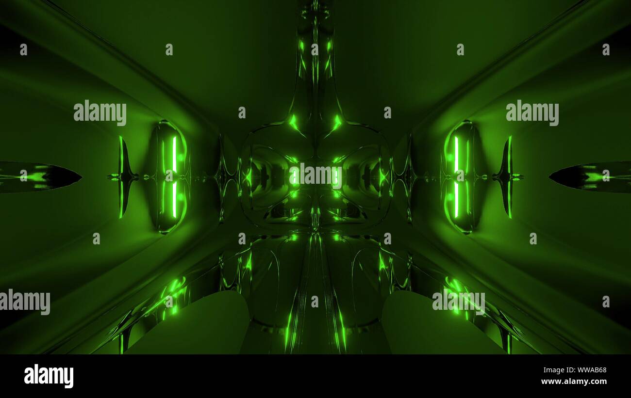 Futuristic Green Alien Style Space Ship Tunnel Corridor 3d