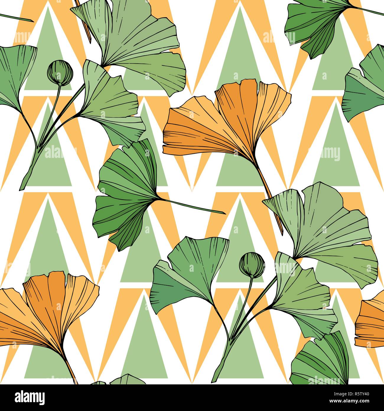 Vector Green And Orange Ginkgo Leaf Seamless Background Pattern Fabric Wallpaper Print Texture On White Background Stock Vector Image Art Alamy