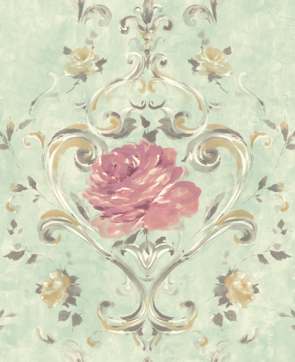 Floral Wallpaper Pink Blue Green Gold Damask Chinoiserie Samples