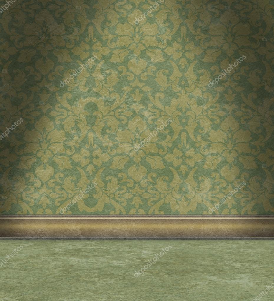 Green Damask Wall And Marble Floor Stock Photograph K17793556