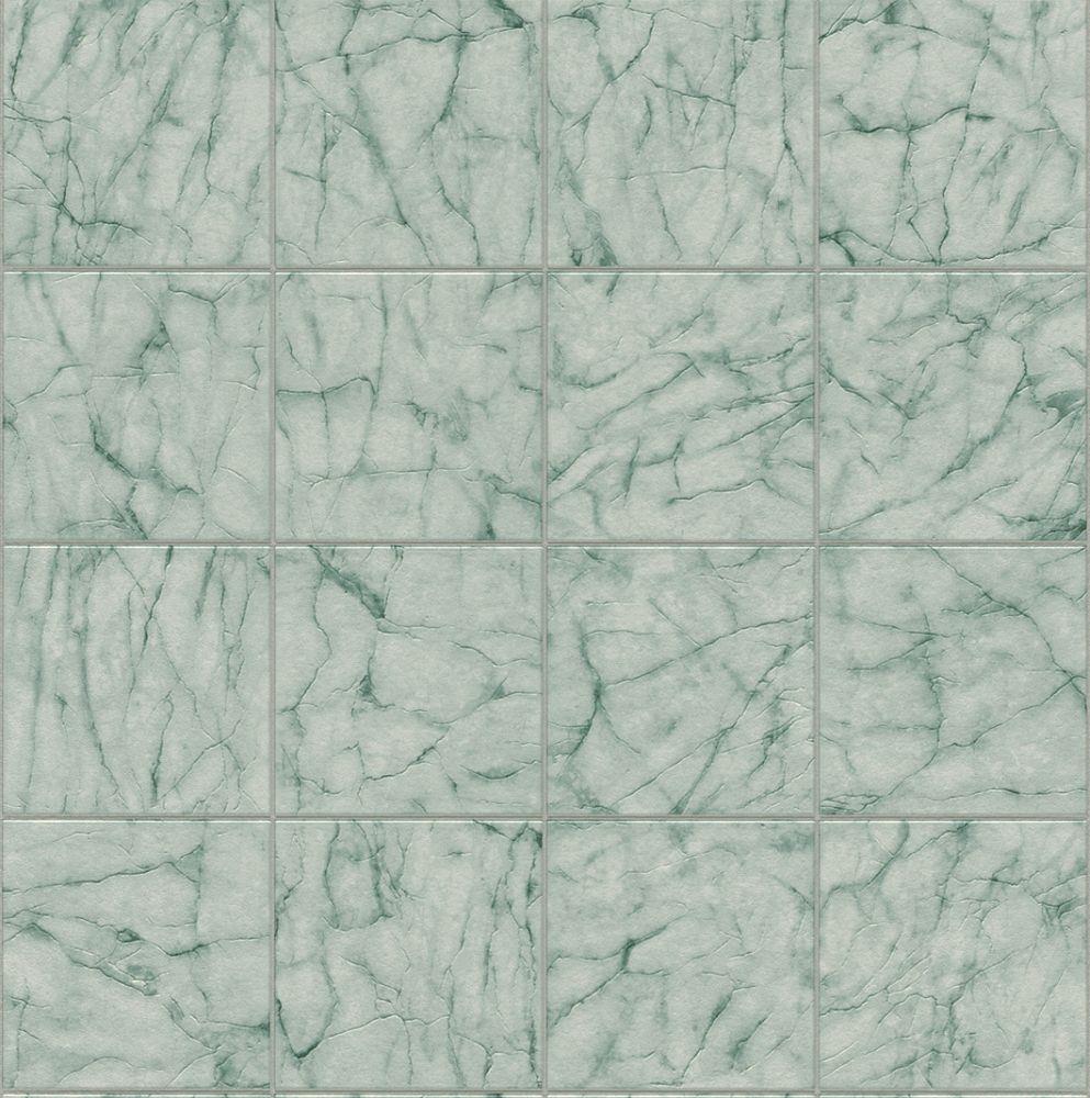 Teal Green Marble Tile Effect Wallpaper Realistic Kitchen Bathroom