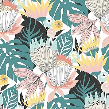 Amazon Com Roommates Retro Tropical Leaves Pink Green Peel And Stick Wallpaper Removable Wallpaper Self Adhesive Wallpaper Home Improvement