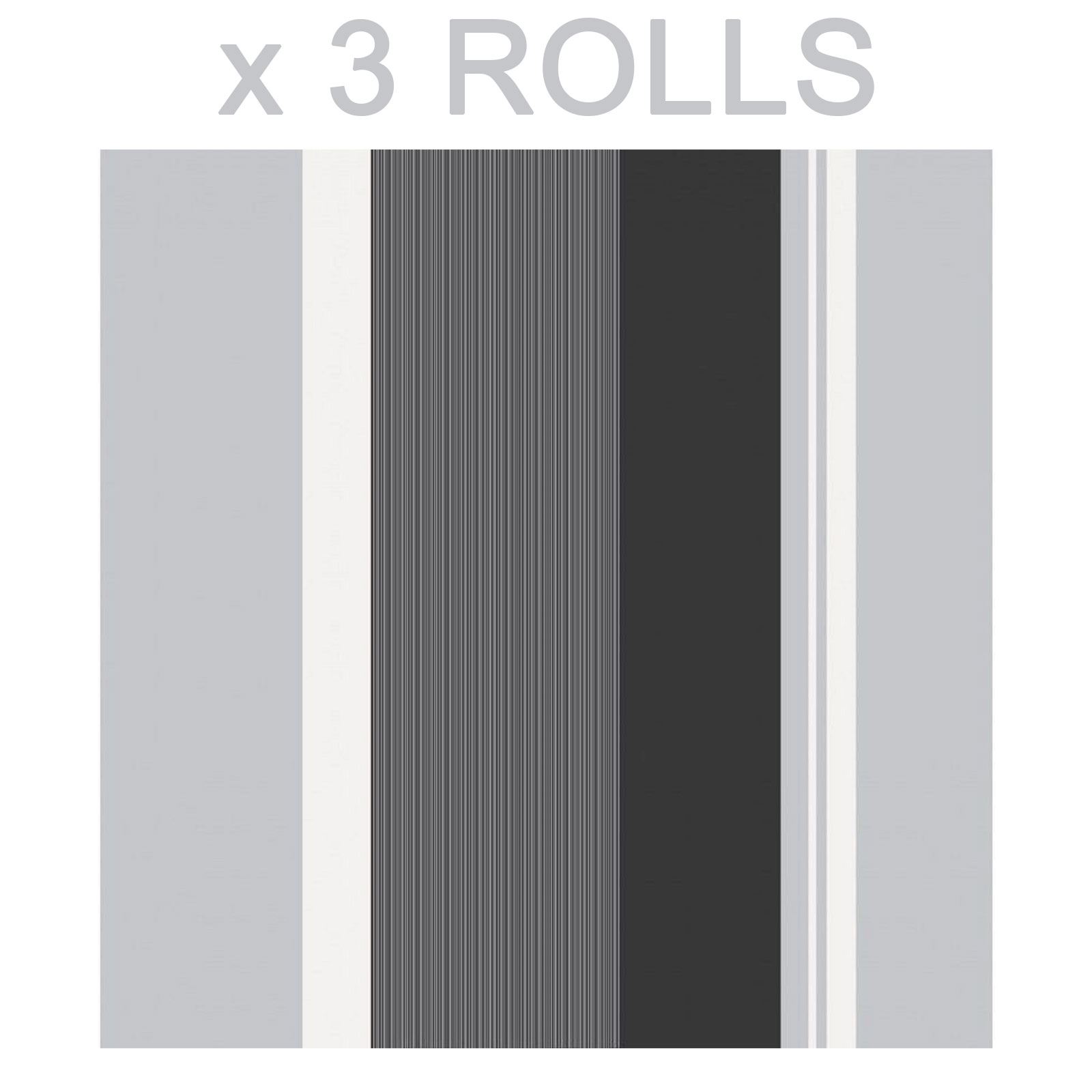 3 Stripe Wallpaper In Dark Grey And White Design By York