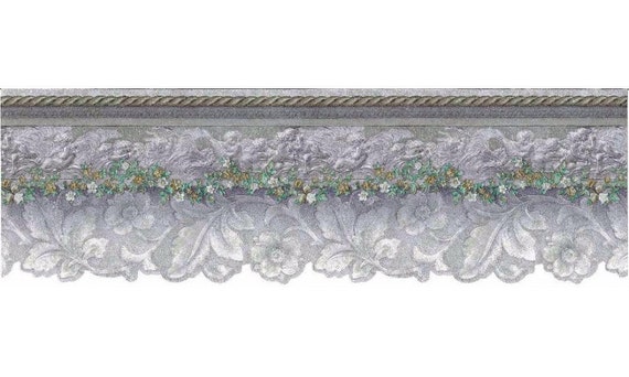 Wonderful Grey Flower Vintage 87964 Wallpaper Border Etsy