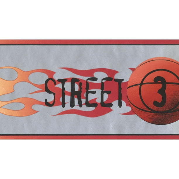Wallpaper Border Street Justice Basketball Flames Off White Grey