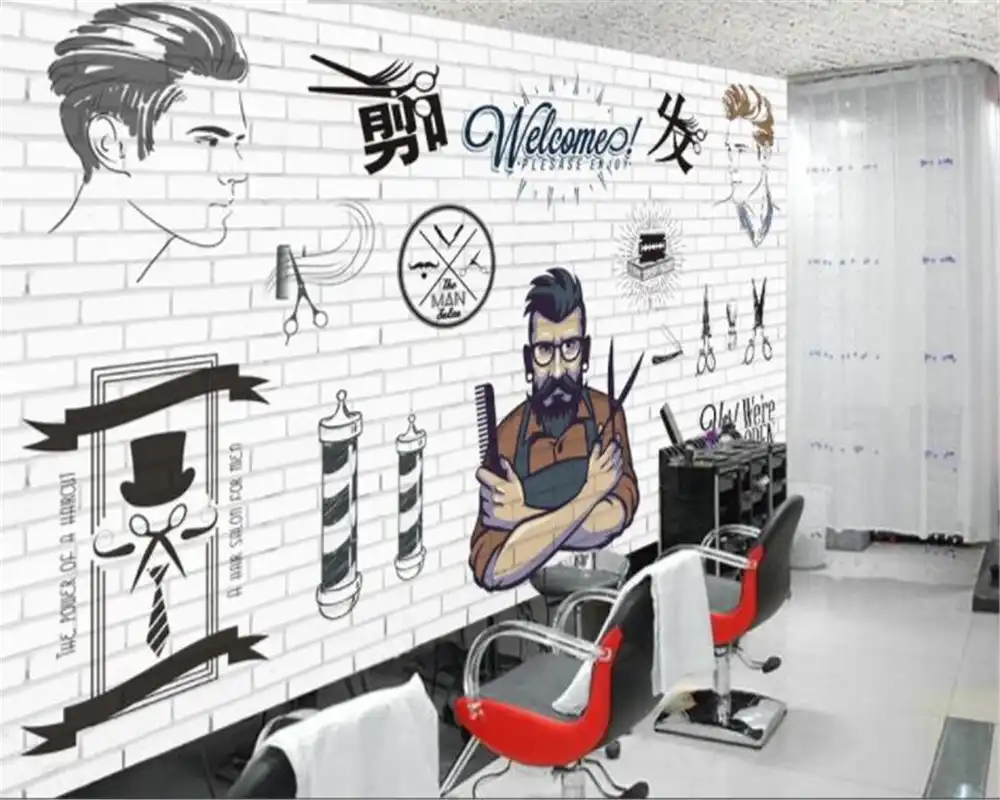 3d Personalized Custom Wallpaper Vintage Barber Shop Hair Salon