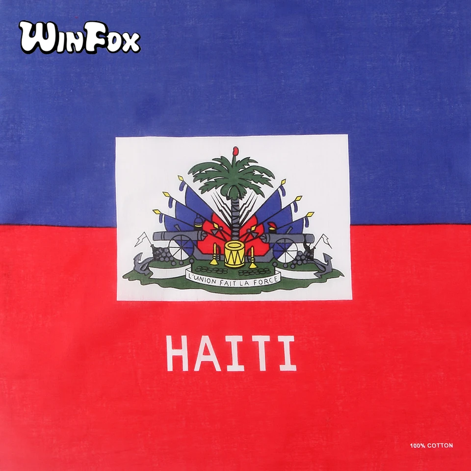 Winfox New Hip Hop Cotton Blue Red Haiti Flag Bandana For Mens