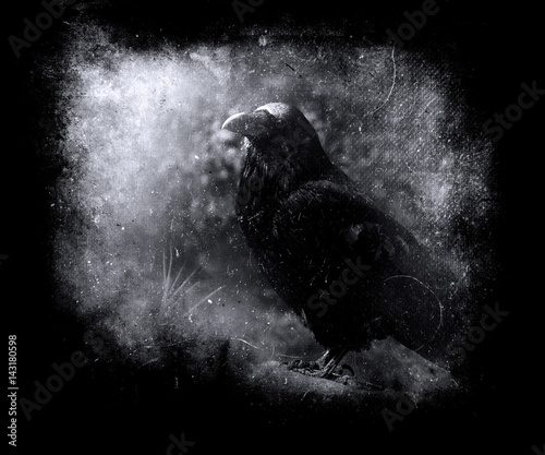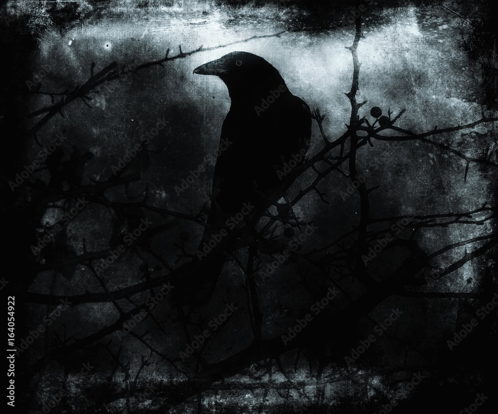 Grunge Vintage Scary Wallpaper With Black Crow Horror Background