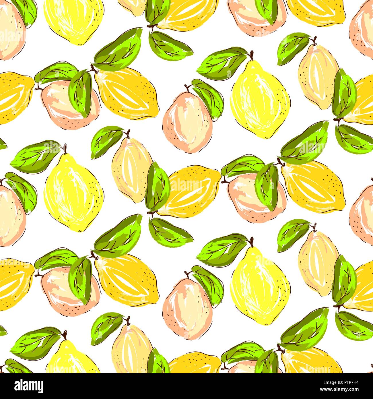Seamless Citrus Pattern Hand Drawn Sketched Lemons And Citrons