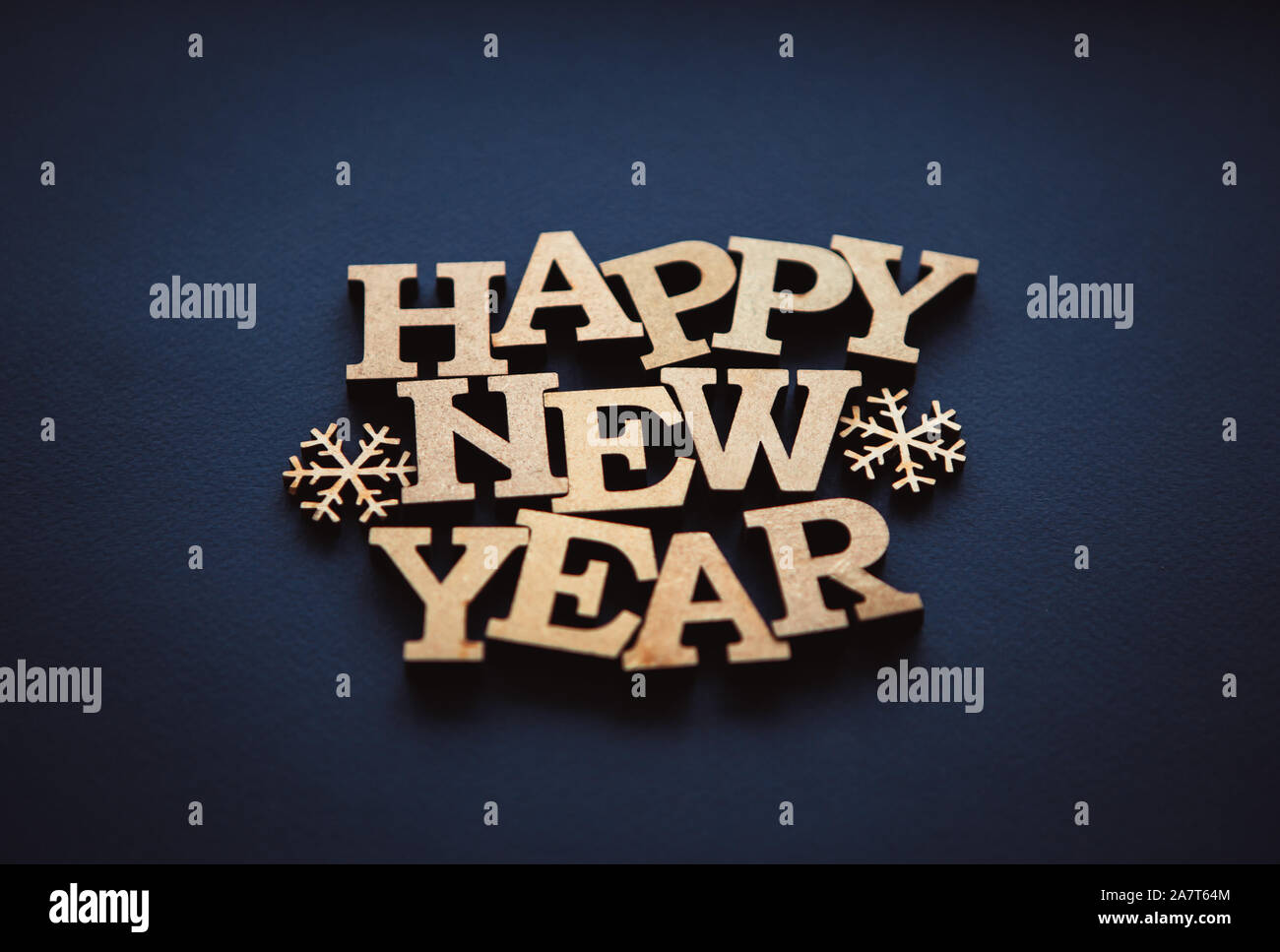 Happy New Year Wallpaper Blue Background With Rustic Wooden Letters On Decorative Paper With Vignette Winter Holiday