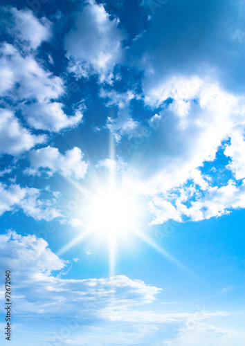 Blue Sky With White Fluffy Clouds Beautiful Cloudscape Heaven