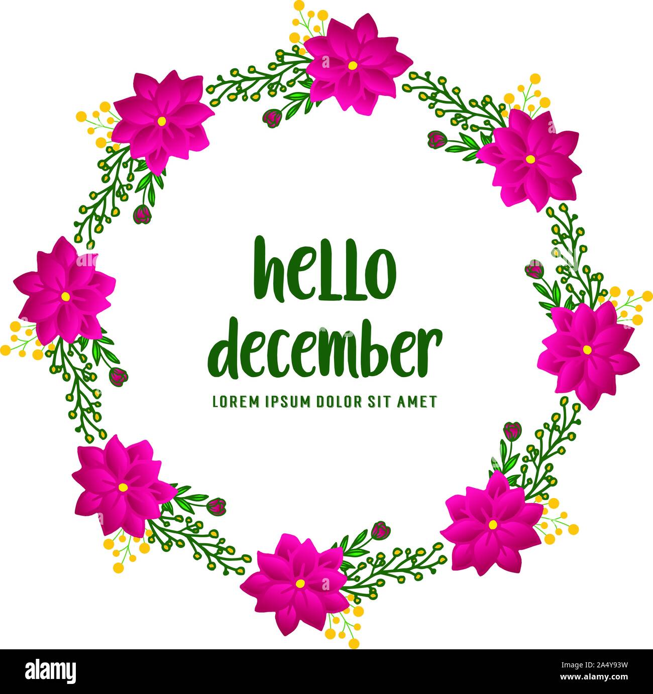 Poster Hello December With Wallpaper Of Green Leafy Flower Frame