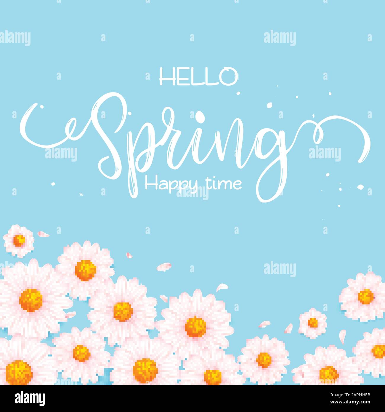 Hello Spring Banner Trendy Texture Season Vocation Weekend Holiday Logo Spring Time Wallpaper Happy Spring Day Spring Vector Lettering Text Fashionable Styling Flower Vector Buy This Stock Vector And Explore Similar