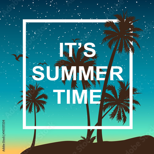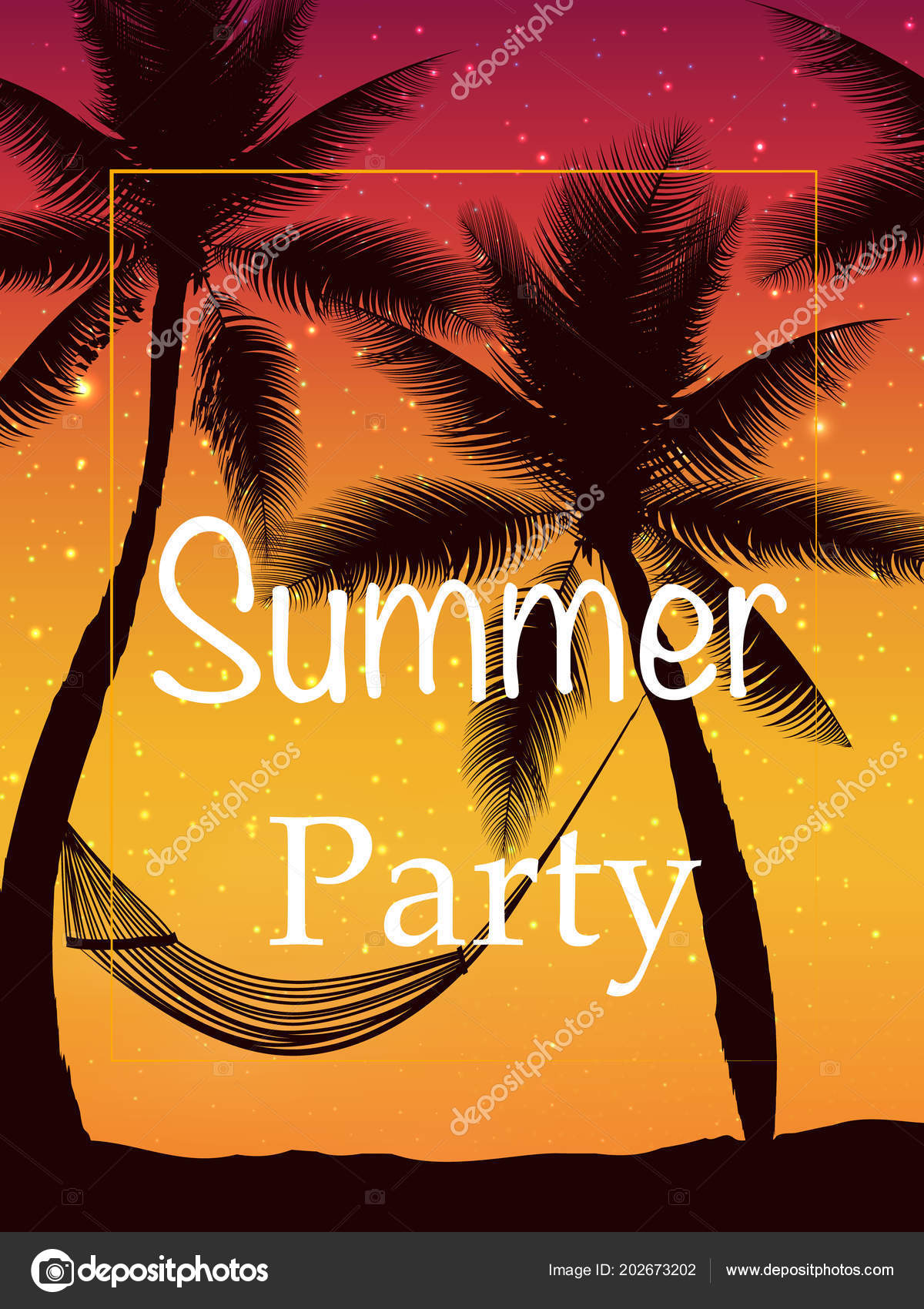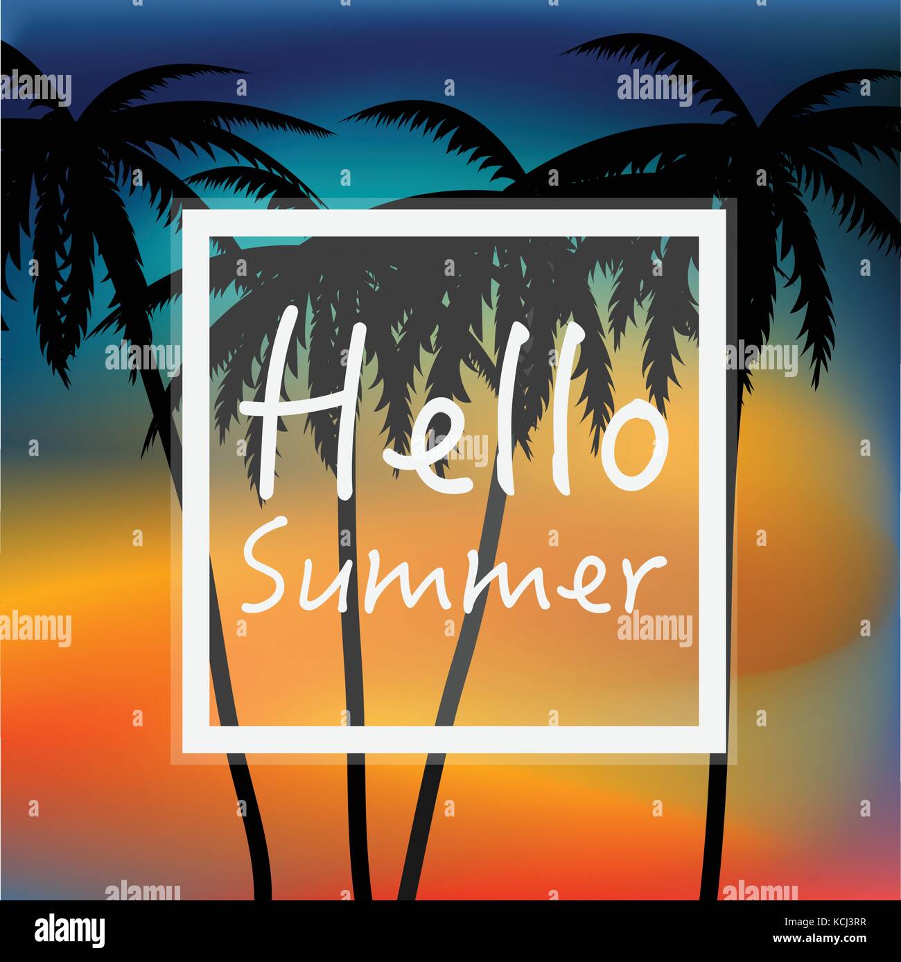 Hello Summer Wallpaper With Palm Trees And Sunset Stock Vector