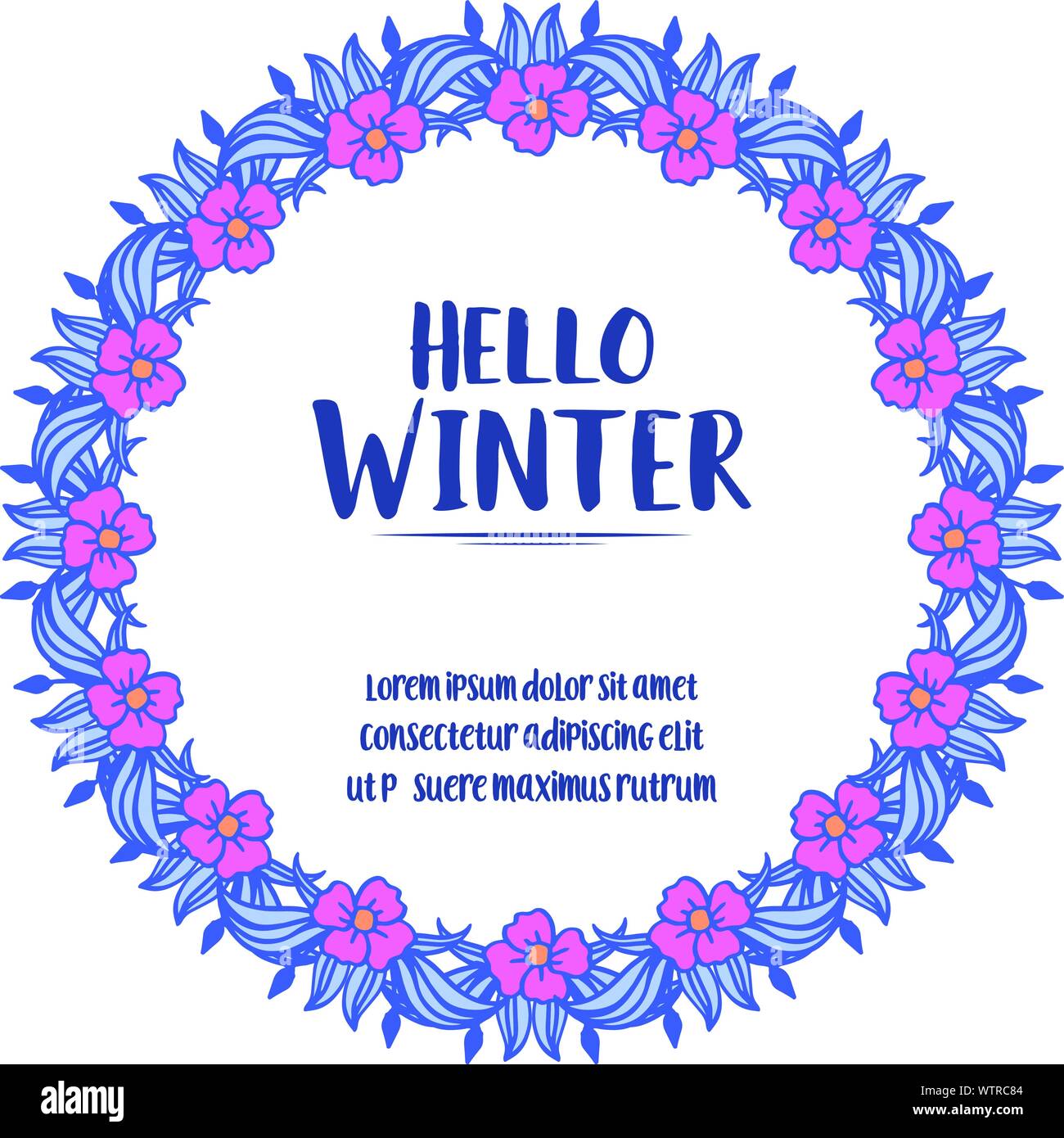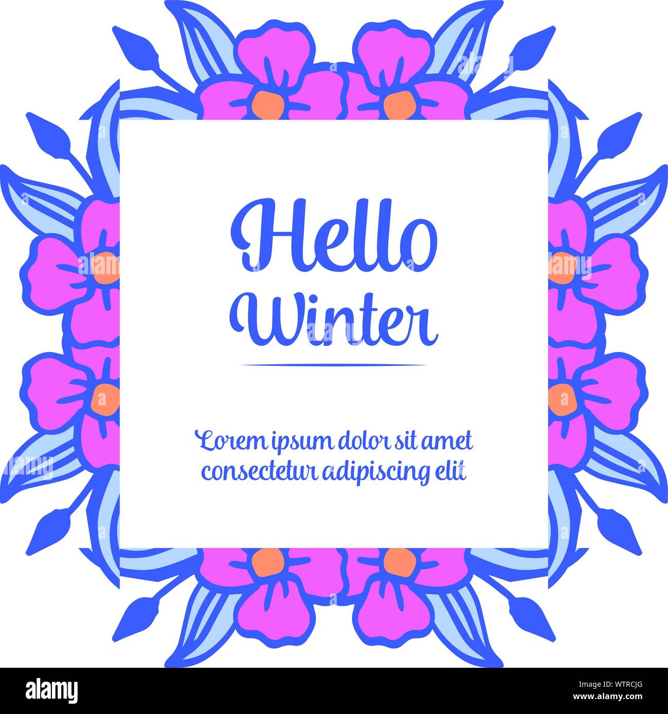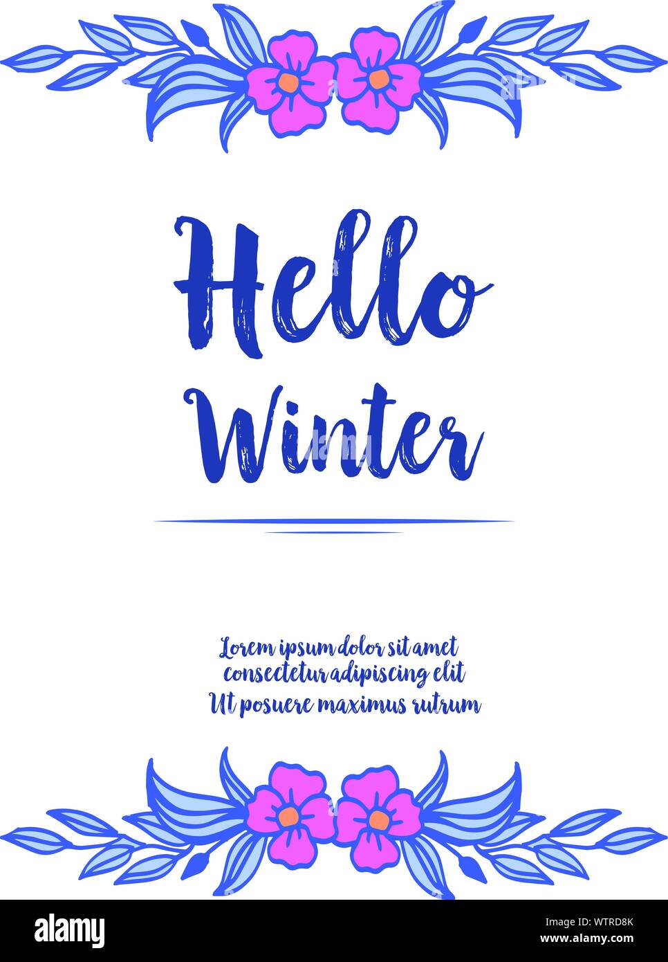 Wallpaper Greeting Card Hello Winter Bright Green Leaves And Elegant Colorful Flower Frame Vector Illustration
