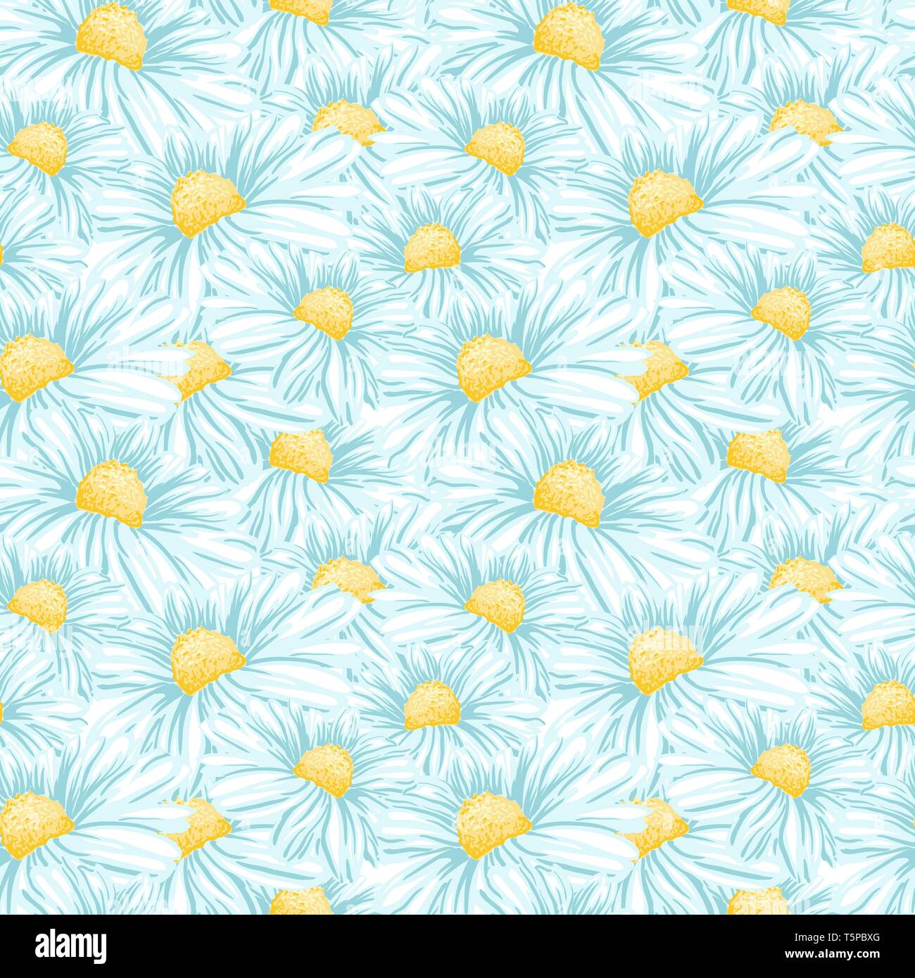 Daisy Or Chamomile Tea Herb Flower Seamless Pattern Herbal Therapy Wallpaper Botany Plant Matricaria Loose Herbs Floral Blossom For Agriculture Packaging Or