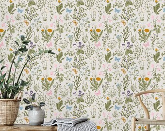 Floral Boho Spring Herbs Removable Wallpaper Coloritto