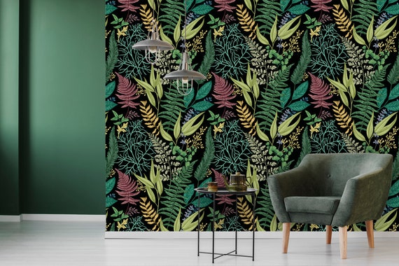 Leaves Herbs Wallpaper Peel And Stick Wall Mural Hand Etsy