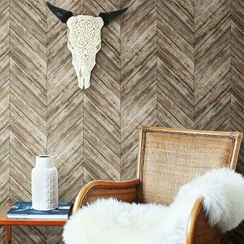 Roommates Herringbone Brown Wood Boards Peel And Stick Wallpaper