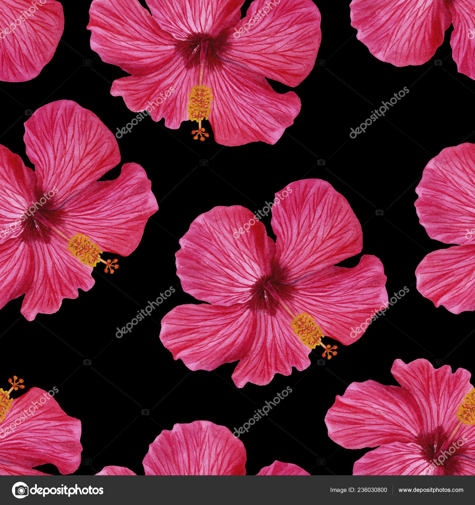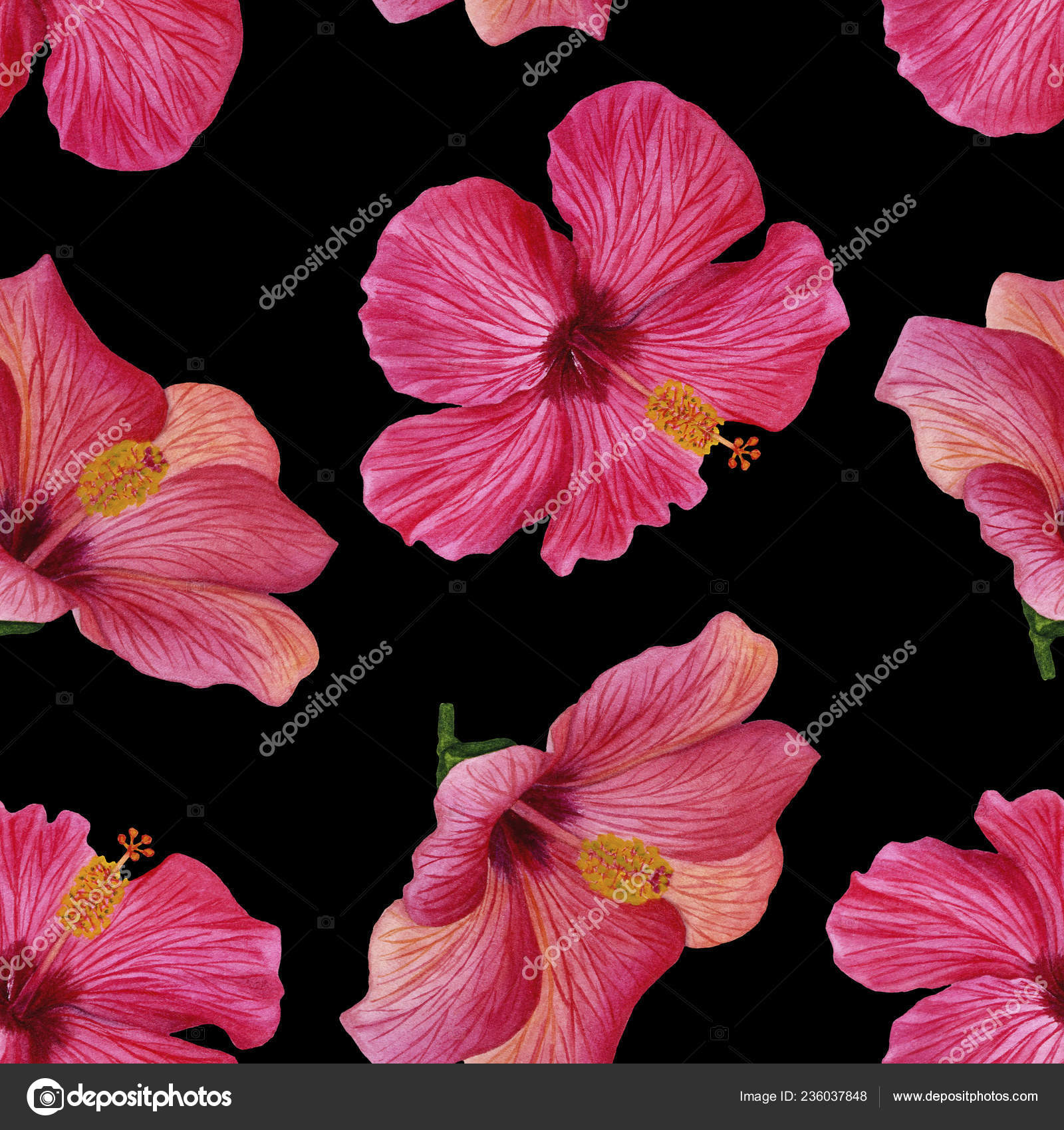 Seamless Pattern Tropical Repeat Lilly Pink Hibiscus Flowers