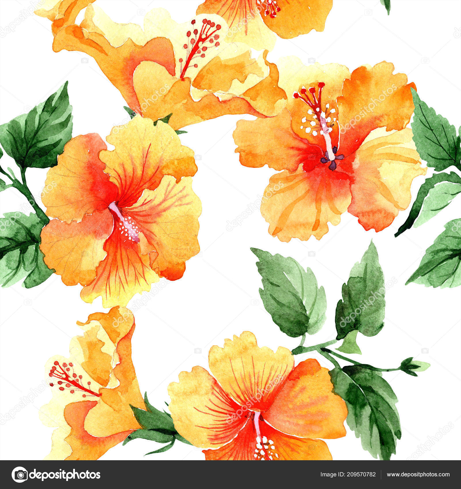 Watercolor Orange Naranja Hibiscus Flowers Floral Botanical Flower