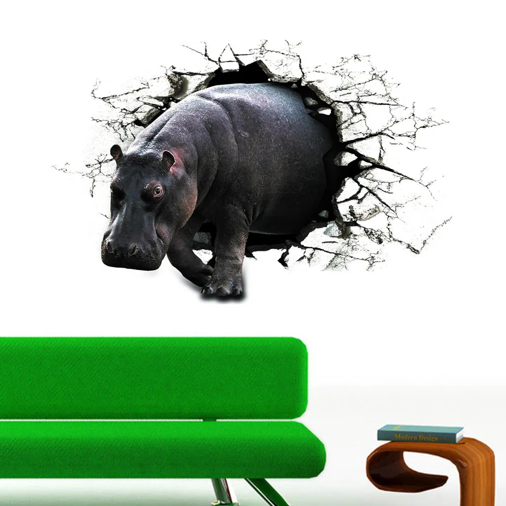 3d Animal Hippo Pvc Sticker Wall Stickers Wallpaper Living Room