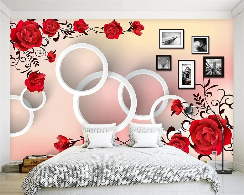 Beibehang Custom Wallpaper Red Roses 3d Circle Tv Background Wallpaper Home Decor Living Room Bedroom Background 3d Wallpaper Wallpapers Aliexpress
