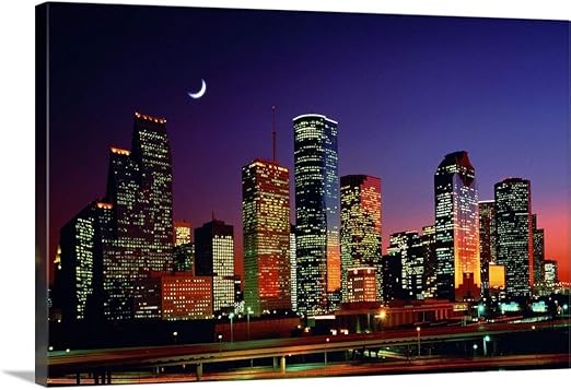 Amazon Com Houston Skyline At Night Texas Canvas Wall Art Print