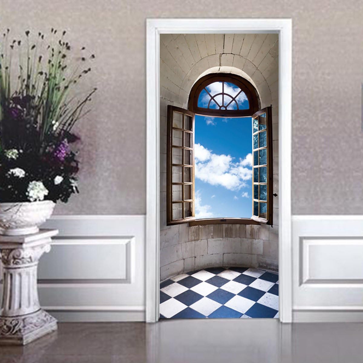 Amazon Com Palaeowind Creative Sky Fake Windows 3d Door Stickers Removable Diy Self Adhesive Wallpaper Pvc