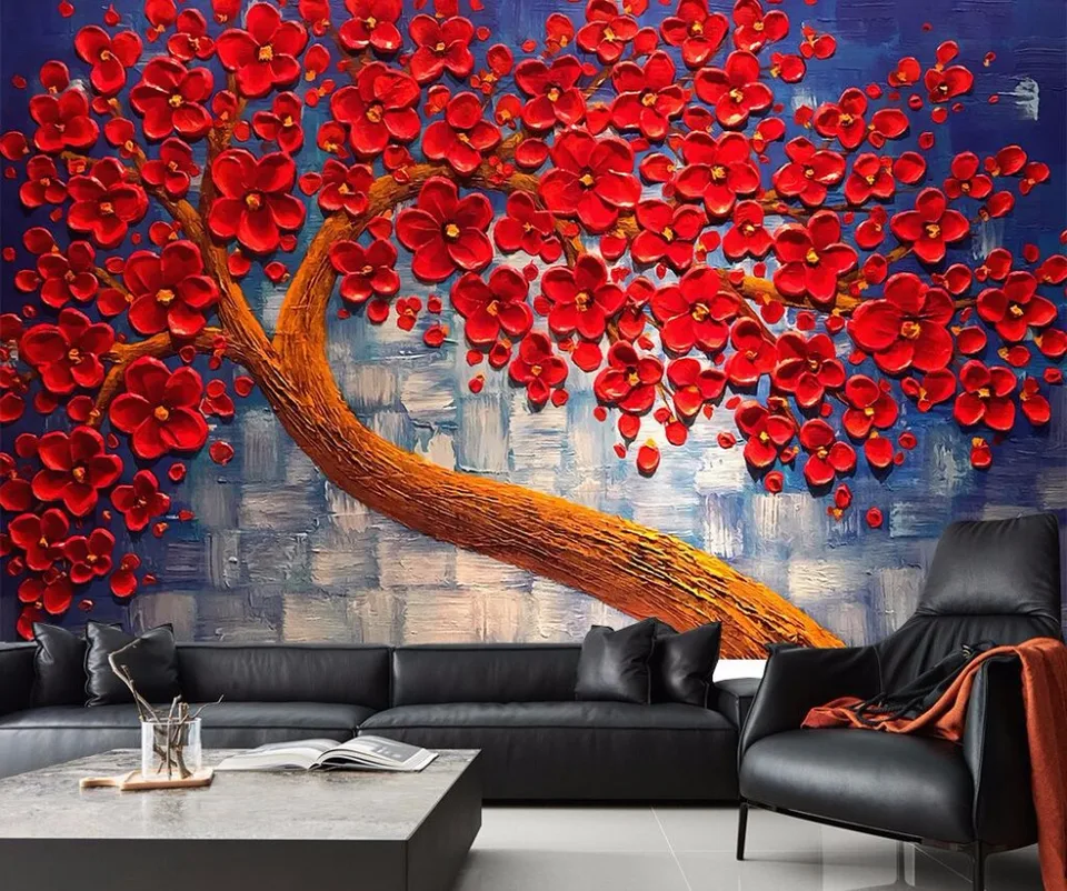 Beibehang Custom Wallpaper Home Decorative Murals Red Flowers Make