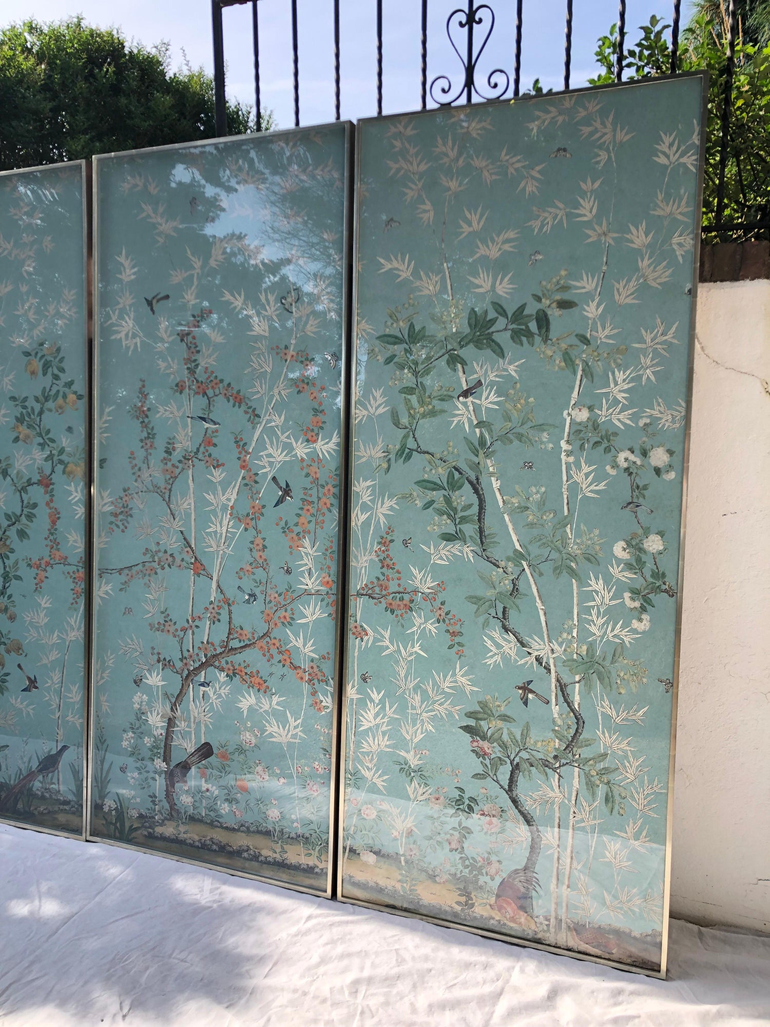Set Of Four Framed Eastern Eden Iksel Wallpaper Panels At 1stdibs