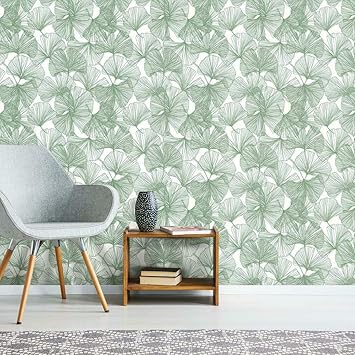 Amazon Com Roommates Green Gingko Leaves Peel And Stick Wallpaper