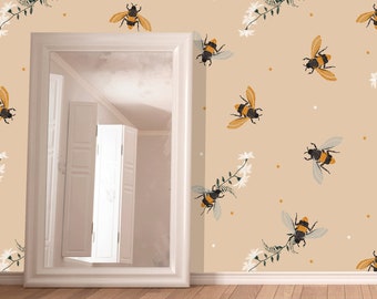 Golden Bee Embroidery Wallpaper Handcrafted Milton King