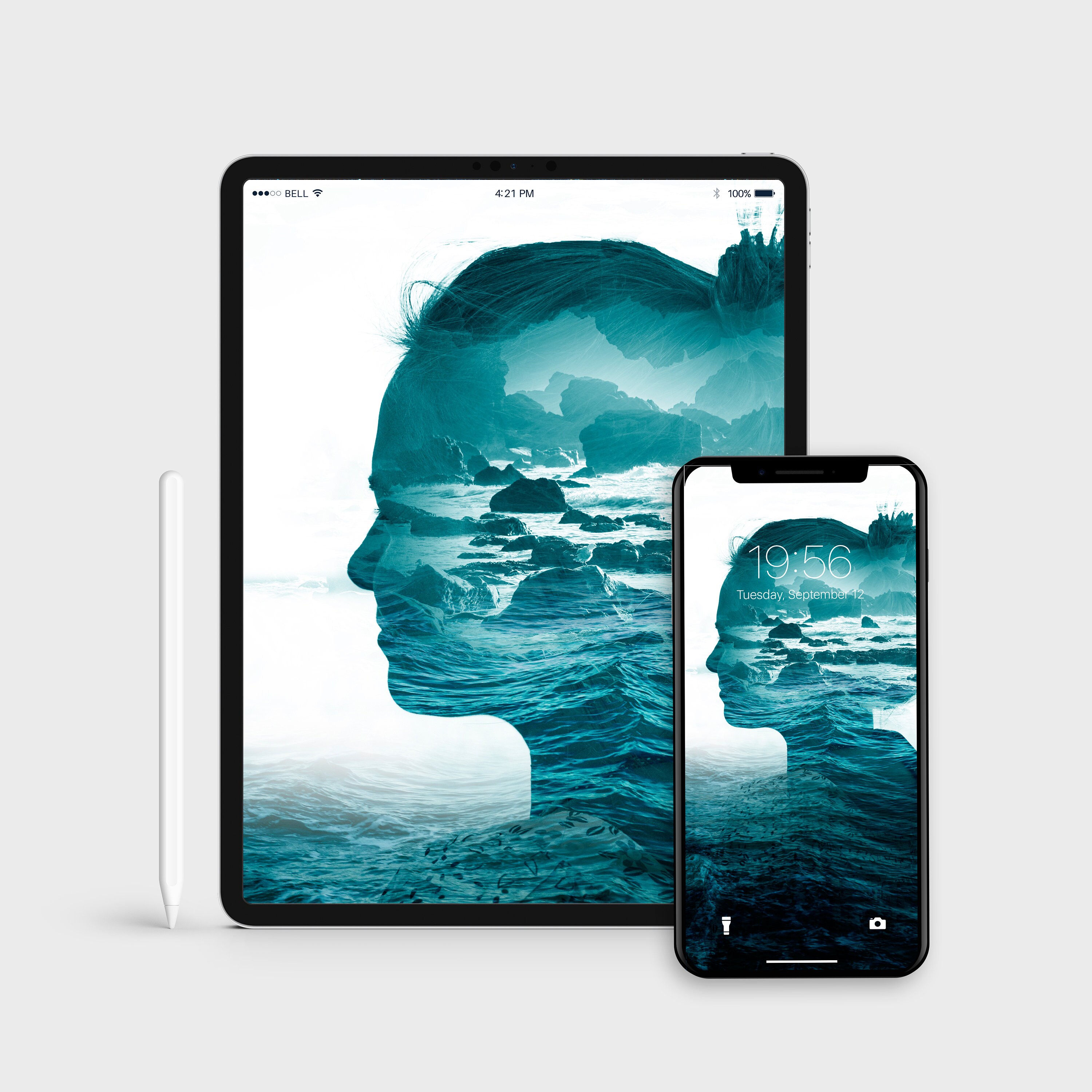 Turquoise Sea Inside Me Double Exposure Art Phone Wallpaper Etsy