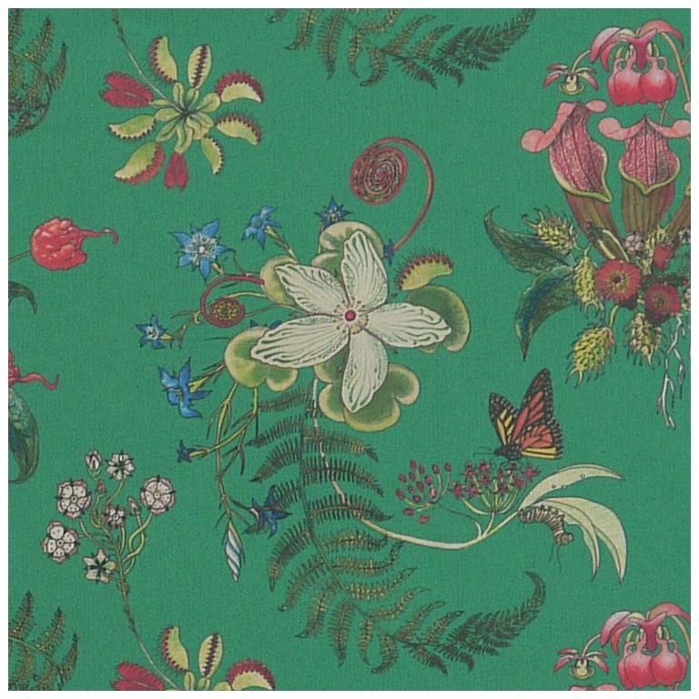 Carolina Posies In Jade Tropical Botanical Wallpaper For Sale At