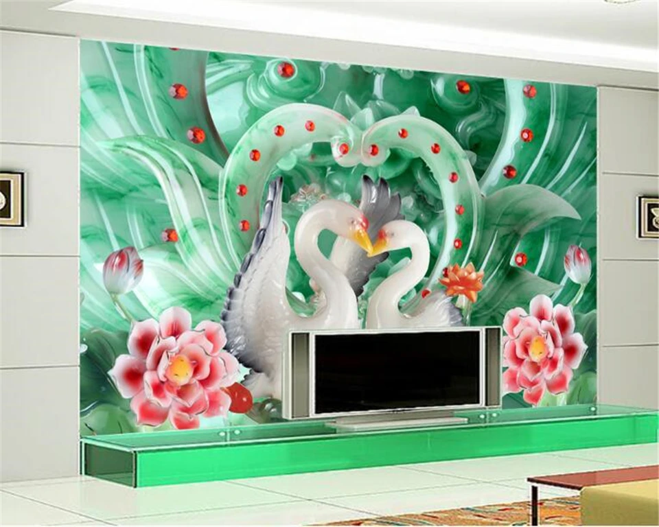Beibehang Papel De Parede Fashion Hd Swan Lotus Jade Wallpaper