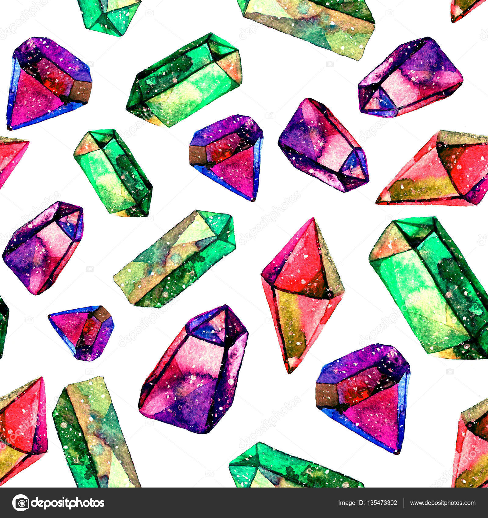 Seamless Pattern With Watercolor Gems Decorative Background With